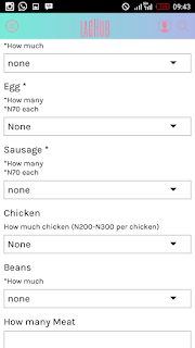 This is My Best Part Of This App. I Could Order Virtually Any Food From Any Registered Food Outlets In My School(UNILAG). Ranging From Rice, beans, eBa, Amala, Plantain, Meat, Fish, Eggs, Spaghetti and Lots More.