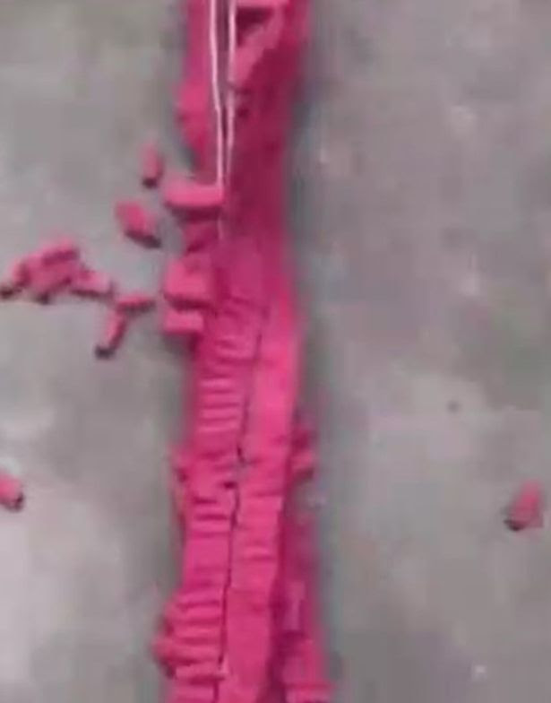 The clip shows the fireworks being lighted by his friends before a plume of smoke envelops the helpless groom as he is subjected to the hail of bangers.